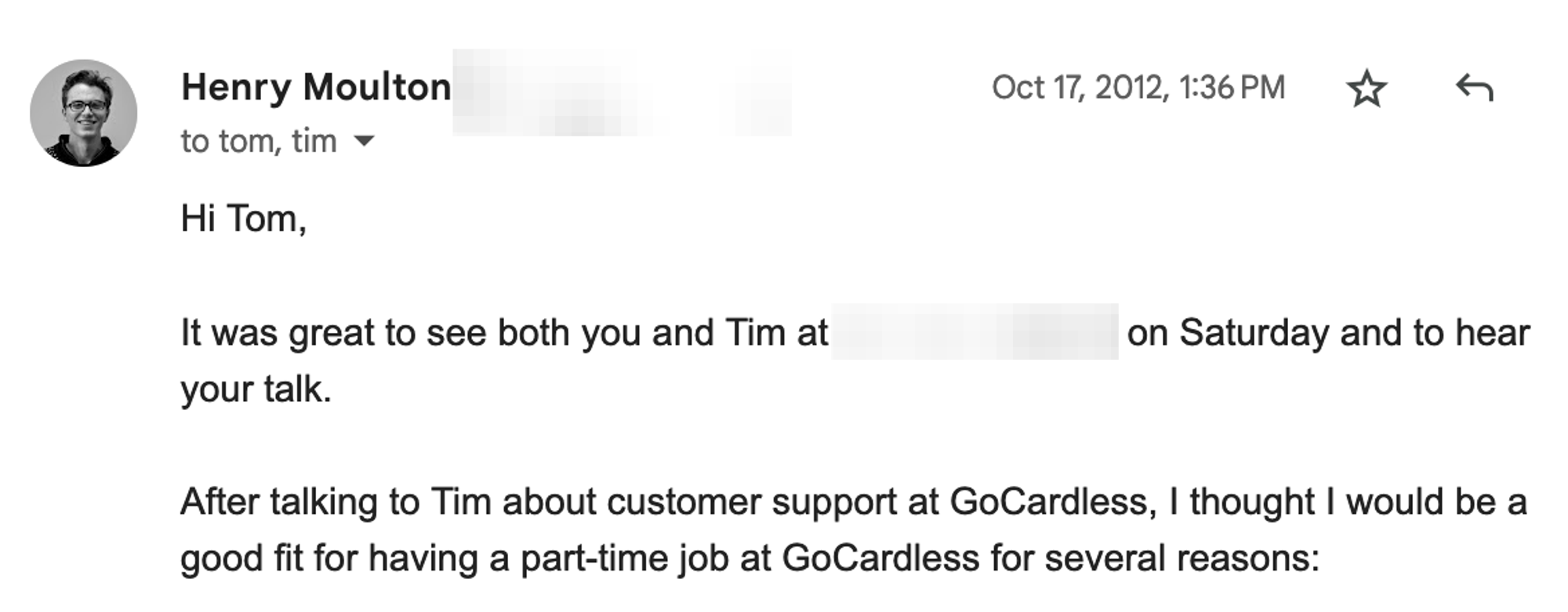 The enthusiasm and energy of the student reminded me of the time I was 19 and a student looking for a job. London didn’t have many good startups in 2012 but there was these smart guys that I’d met who had come back to London from Silicon Valley to build a fintech startup. So I thought I’d email: