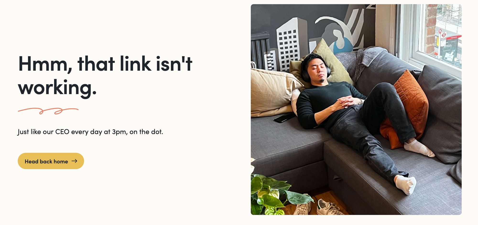 Naps were allowed at Yonder because Tim would either nap or meditate in the office, so obviously this is our 404: